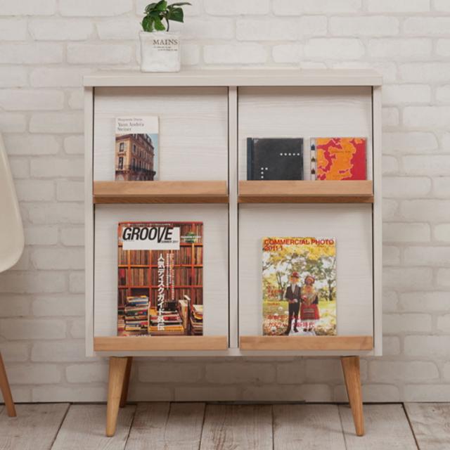 脚付マガジンラック 幅74 ホワイト 完成品 北欧 本収納 ブックラック マガジンラック 棚 シンプル リビングボード キャビネット キャビネット ラック 日本製 レコード 雑誌(代引不可)【送料無料】