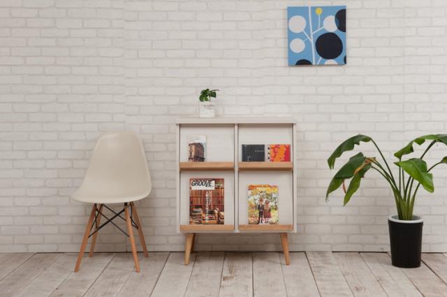 ディスプレイも兼ねたマガジン収納はインテリア性も高くGood。掃除も楽な高めの脚付きで、おしゃれ。