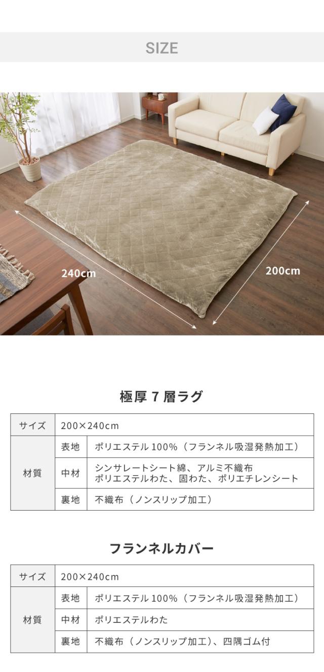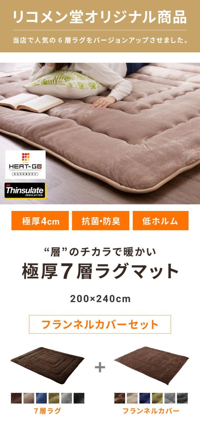 【ラグカバーセット】 シンサレート使用 あったか極厚7層ラグマット 200×240 約4.5cm厚 厚手 極厚 ふかふか ホットカーペット対応 リビング ラグ ラグマット 絨毯 カーペット あったか シンサレート【送料無料】