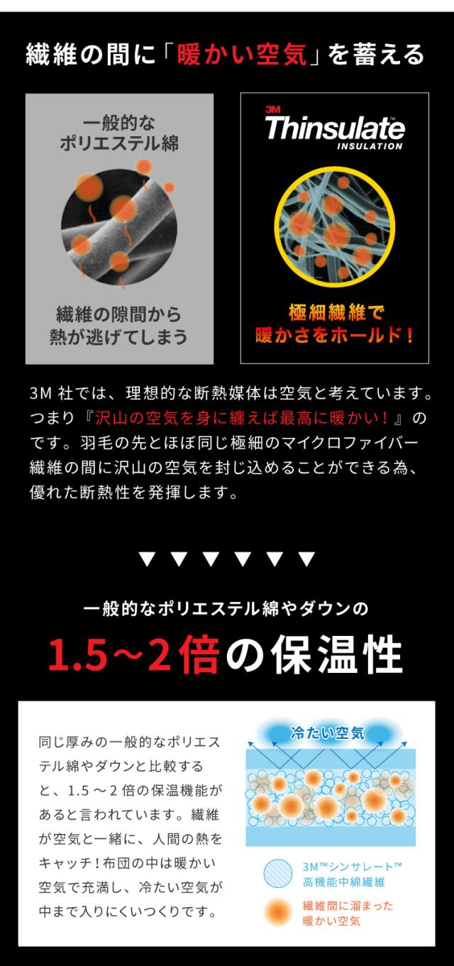 中材:シンサレートシート、アルミ不織布、ポリエステルわた、固わた、ポリエチレンシート