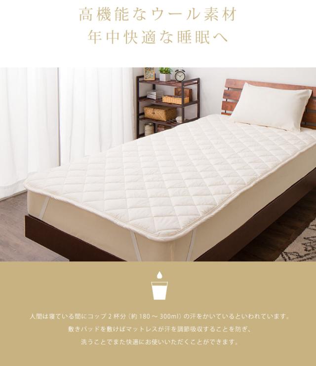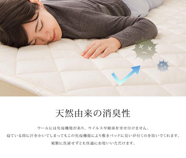 敷きパッド 日本製 羊毛100%使用 ウール敷パッド シングル 消臭 吸湿性抜群 ウール100% ウール 洗える 丸洗い可能 消臭ウールベッドパッド 冬は暖かく夏は涼しい ベッドパッド ベッドパット 羊毛ベッドパッド 【送料無料】