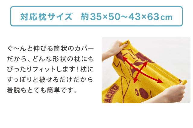 抗菌防臭加工 のびのび まくらカバー ピカチュウ 35×50 43×63 枕カバー パイル生地 タオル生地 筒形 伸縮 ストレッチ 子ども 柄 可愛い(代引不可)【メール便】【送料無料】