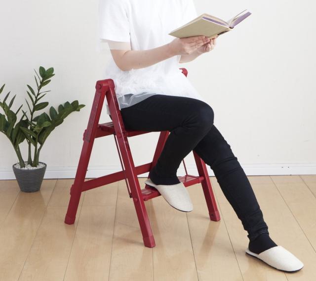 カラーアルミステップ おりたたみスリム2段 レッド N-7621 パール金属 脚立【送料無料】