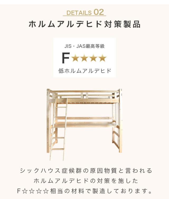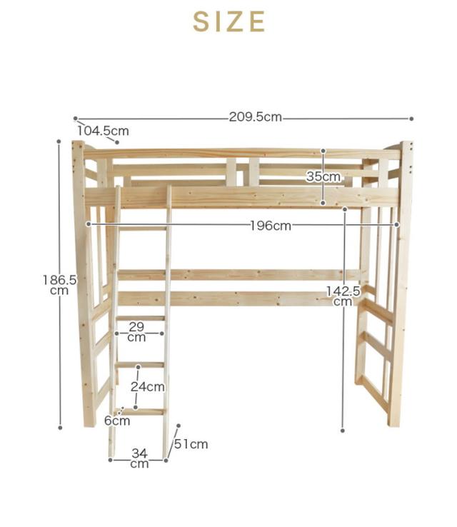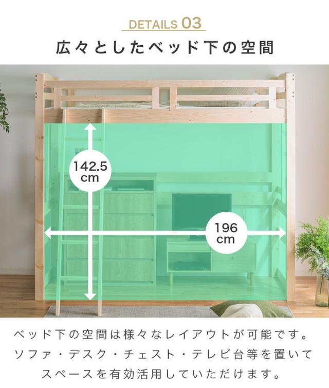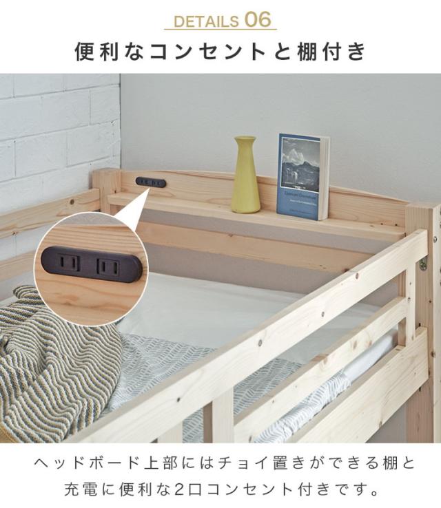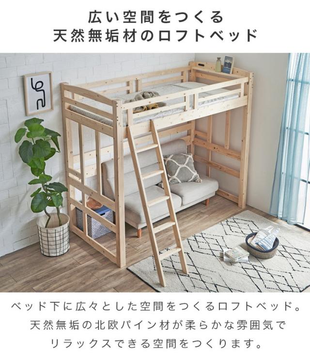 ロフトベッド ハイタイプ 子供 木製 大人 はしご付き ハイベッド ブックスタンド付き コンセント付き ベッド下 レイアウト自由 フリースペース すのこ床板 頑丈 ナチュラル パイン材(代引不可)【送料無料】