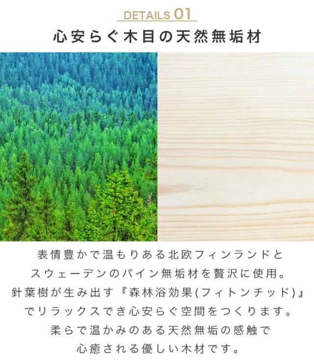 風合いのよい天然木パイン材を生かしたナチュラルでシンプルなデザイン。