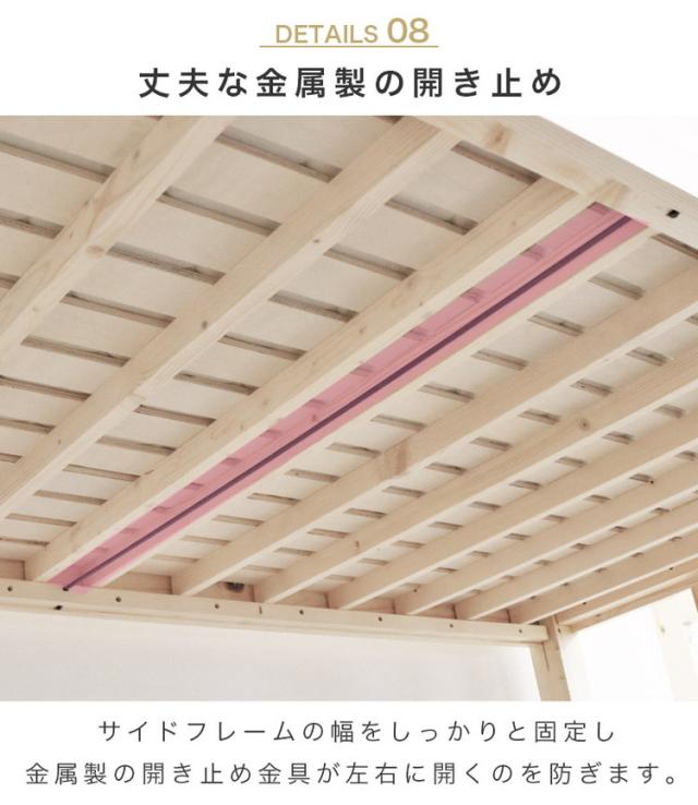 ベッドは一般的なシングルサイズで床板は通気性抜群のすのこ床板を使用。