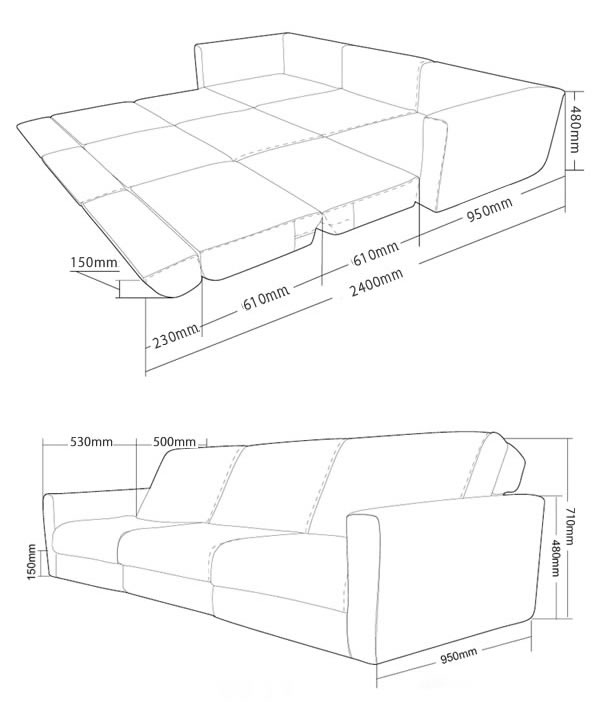 サイズ(2.5P):幅1900 奥行950〜2400 高さ480〜710mm