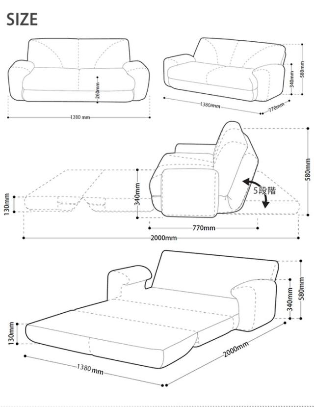 通常のソファスタイルに加えて、足を伸ばせば、寝ることもできます。