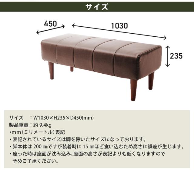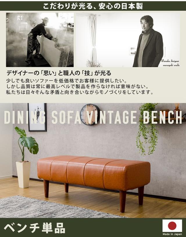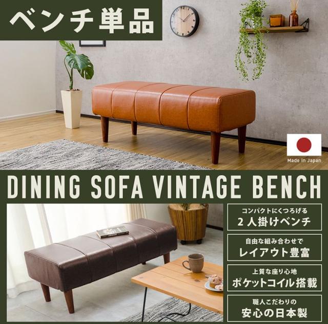 日本製 ダイニングベンチ ヴィンテージ ダイニング ベンチ ソファ 背無し スツール ダイニングチェア レザー生地 撥水 おしゃれ ブラウン ローソファ ソファー 二人掛け 国産(代引不可)【送料無料】
