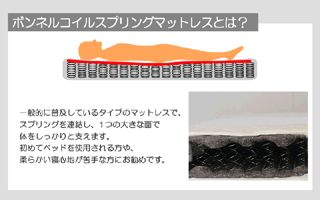 ■マットレス主材/2.0mmポケットコイルスプリング(コイル数660個)、ウレタンフォーム、フェルト、ポリエステル綿混合張地、両面多針キルティング加工