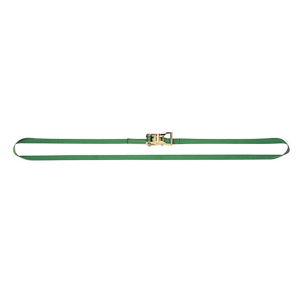 ラチェットバックル式で、操作が簡単。荷締め作業がスピーディです。しかもポリエステル製で、耐久力抜群。ベルトの幅があるので荷物の損傷を防ぎ、しかも安定した運搬が可能。ベルトの片側面にあるセーフティラインで使用廃止基準がひとめでわかるようになっています。