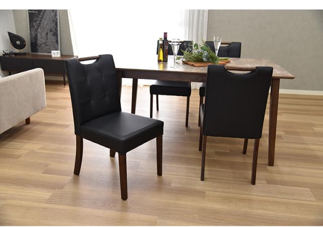 天板は熱・汚れ傷に強いメラミン天板で機能面たっぷり、チェアもサッとお手入れしやすい。