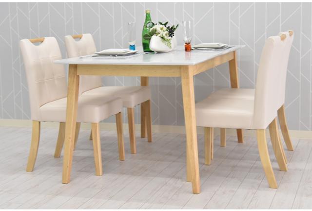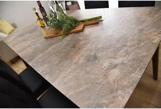 天然木と大理石柄が合わさったカジュアルモダンテイストのダイニングテーブル