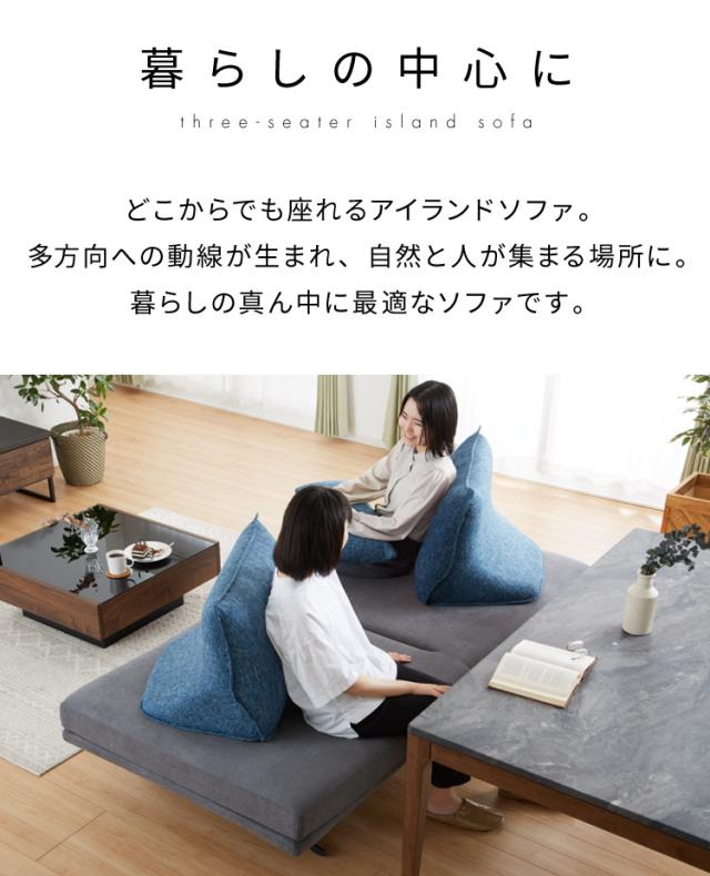 アイランドソファ ソファセット 背もたれクッション×2 幅195 間仕切り 3人掛け 背もたれクッション モダン 脚付き ソファベッド フロアソファ ローソファ 大型 開梱設置無料(代引不可)【送料無料】