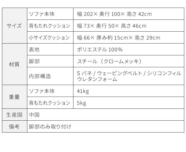3人掛け202cm+クッション2個 | 3人掛け202cm+クッション3個 | 3人掛け202cm/ソファ本体単品 |