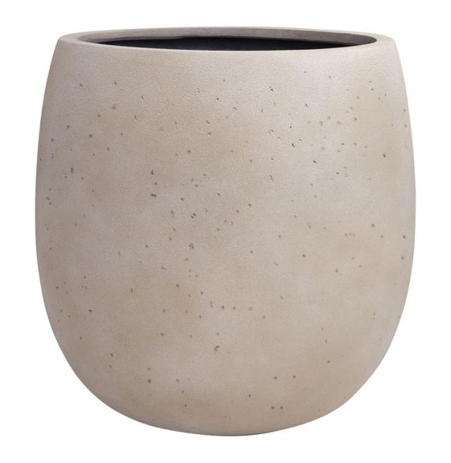 曲線が紡ぐ柔らかなとき。表面は多孔質なセメントの表情と自然な色ムラを表現。流線型のフォルムが、緑と共に空間の雰囲気をやわらげます。