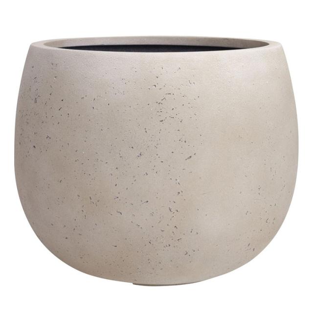 曲線が紡ぐ柔らかなとき。表面は多孔質なセメントの表情と自然な色ムラを表現。流線型のフォルムが、緑と共に空間の雰囲気をやわらげます。