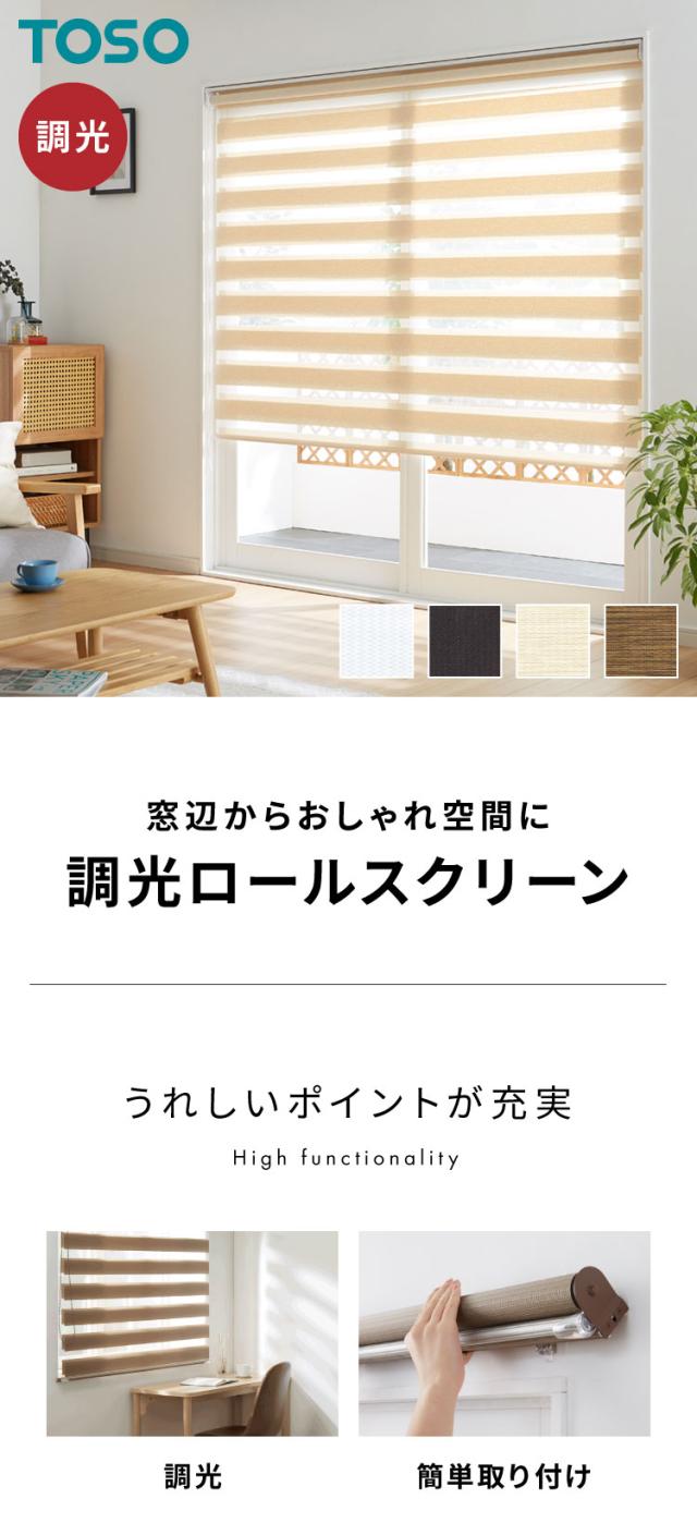 調光 ロールスクリーン 幅180×丈200cm 規格サイズ 右側チェーンタイプ 4色展開 無地 調光 目隠し 遮光 採光 白 ホワイト アイボリー ブラウン TOSO(代引不可)