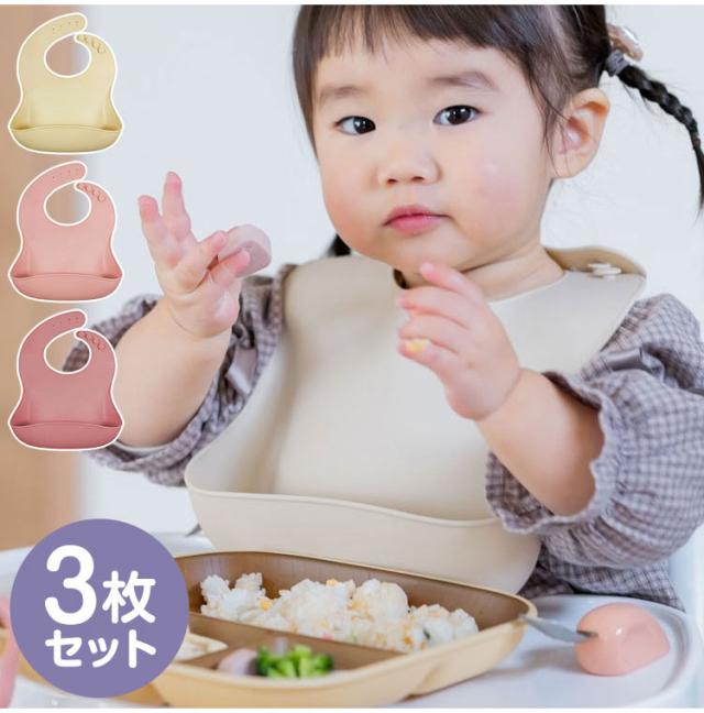 Panos パノス かろやかシリコンビブ3枚セット クリーム ベビーピンク ローズ お食事 赤ちゃん シリコン シリコンスタイ(代引不可)