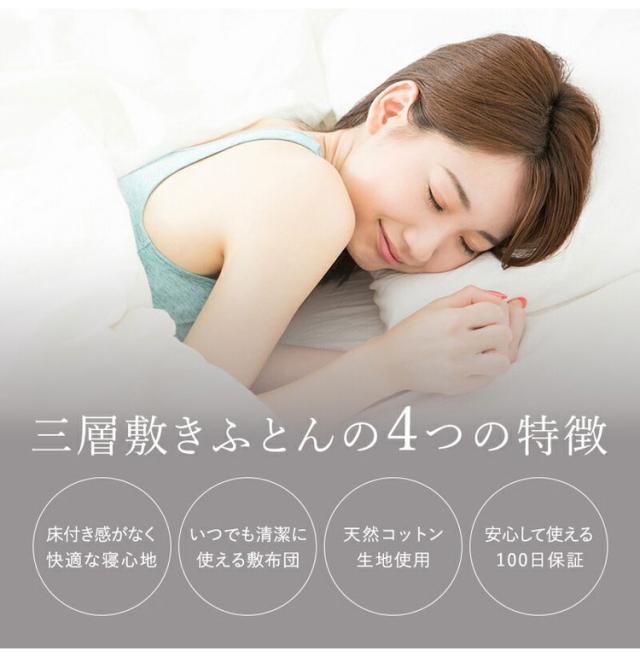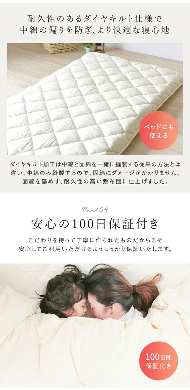 極厚ボリューム清潔三層敷布団 国産 ダブルロング ダイヤキルト天然コットン 100% 安心安全高品質 国産敷布団 快適 快眠 清潔 防ダニ 抗菌 防臭 耐久性 敷き布団 布団 ふとん(代引不可)【送料無料】