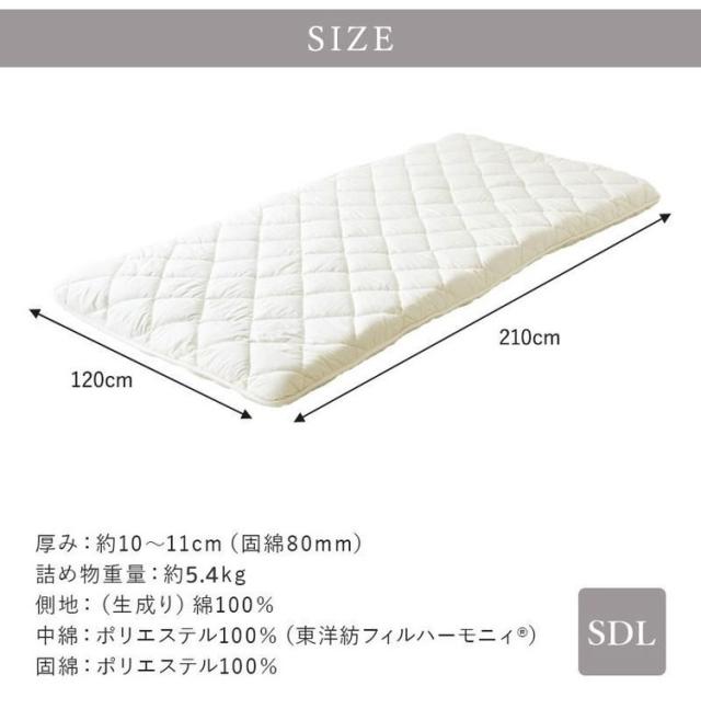 極厚ボリューム清潔三層敷布団 国産 セミダブルロング ダイヤキルト天然コットン 100% 安心安全高品質 国産敷布団 快適 快眠 清潔 防ダニ 抗菌 防臭 耐久性 敷き布団 布団 ふとん(代引不可)【送料無料】