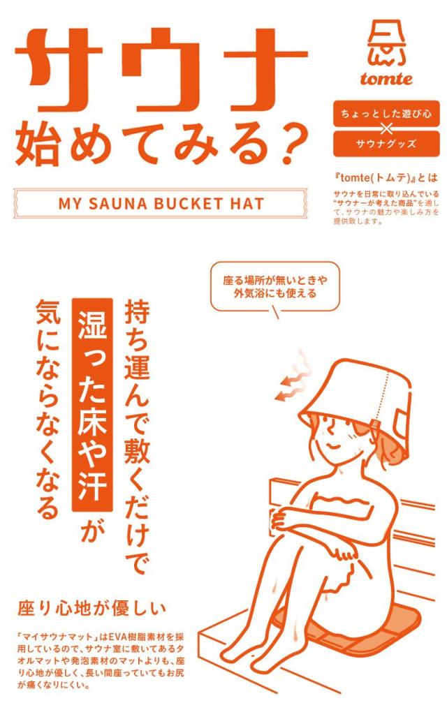 tomte サウナバスマット 折りたたみ バスマット頭囲60cm 洗濯可能 サウナ お風呂 水風呂 ロウリュ ロウリュウ ととのう ととのい アロマ 癒し 汗 発汗(代引不可)【送料無料】