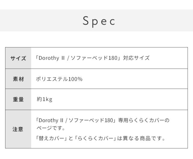 「Dorothy II / ソファーベッド180」専用らくらく替えカバーのページです。