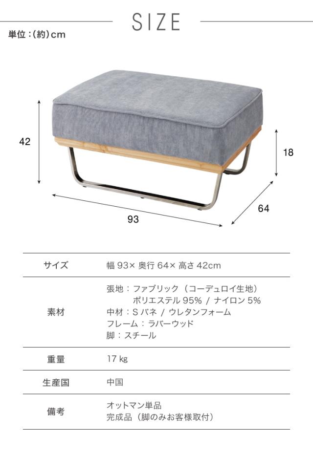 オットマン スツール 単品 ソファ ソファー コーデュロイ チェア 幅93 奥行64 高さ42 ブルー グリーン ファブリック 布 スチール脚(代引不可)【送料無料】