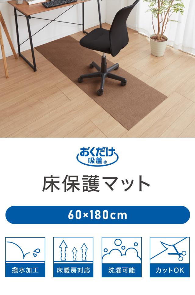 サンコー おくだけ吸着 日本製 床保護マット 60×180cm 厚さ4mm 撥水 はっ水 マット ロングマット カットできる 床暖房可 消臭 ペット用 犬 猫 いぬ ねこ【送料無料】