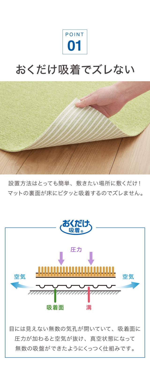 ・マットの裏面が床にピタッと吸着するのでズレません。