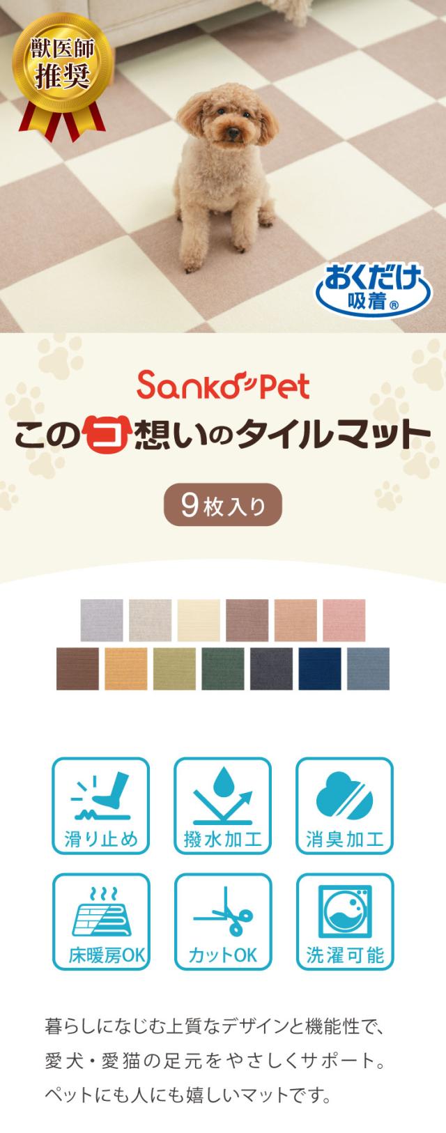SankoPet 日本製 ペット用 マット タイルマット 9枚入 撥水 防水 滑り止め ズレない 洗える おくだけ吸着