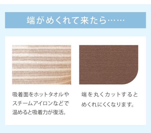 ・掃除機をかけても、裏面の吸着効果でめくれ上がることがないので、お掃除もラクラク!
