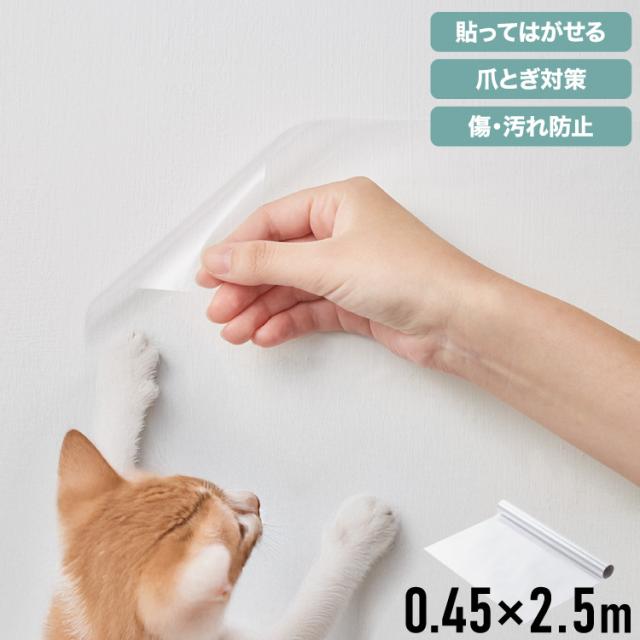 壁保護 シート 0.45×2.5m 貼って剥がせる 爪とぎ防止 はっ水 透明 クリア フリーカット 貼り直し可能 賃貸OK 目立たない 貼り付け簡単 汚れ防止 マーキング対策 45cm 2.5m 猫 ウサギ うさぎ ねこ 犬【送料無料】