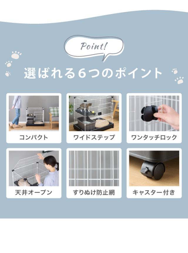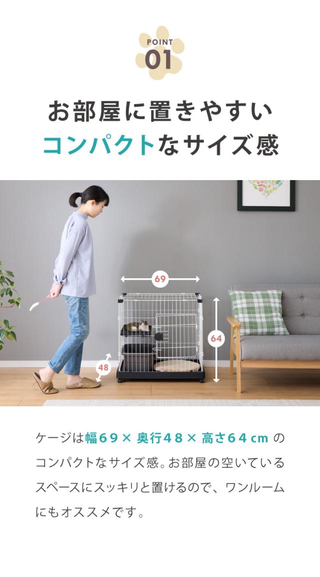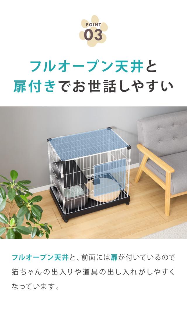 猫 ケージ 1段 おしゃれ スリム コンパクト キャスター付 脱走防止 お手入れ簡単 ペットケージ キャットケージ キャット ケージ キャットハウス ペットハウス 室内 屋内 保護 保護猫 ハウス