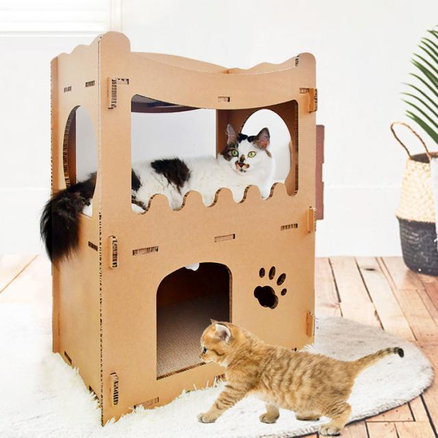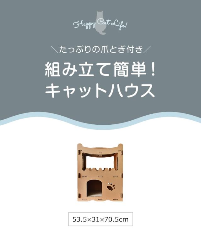 猫、爪とぎ、ダンボールハウス、組み立て、簡単、猫用品、ペット用品、おもちゃ、ストレス解消、ペットハウス、キャットハウス、キャットタワー、ダンボールハウス、ベッド、猫箱、ネコ、ねこ、省スペース、多頭飼い、高密度段ボール、段ボール、耐久性、組み立て式