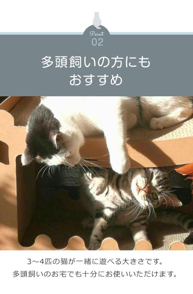 ・各フロアが爪とぎボードになっているので、猫たちのストレス解消に