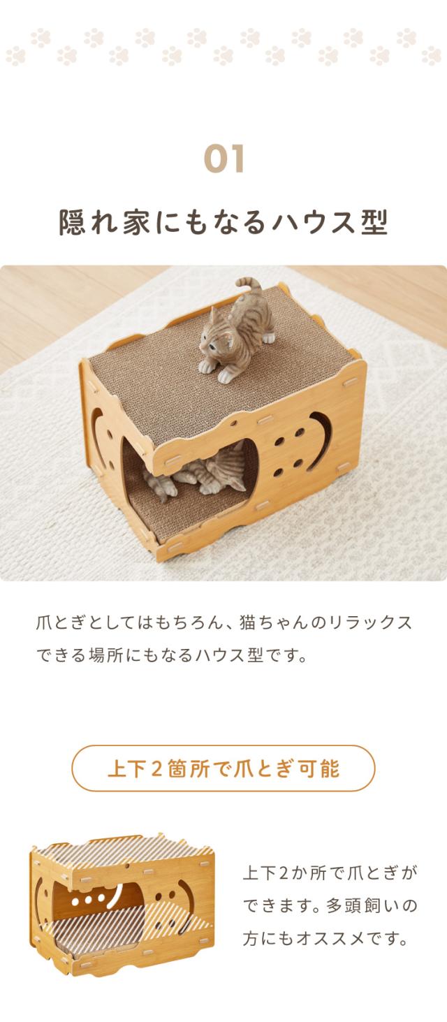 猫、爪とぎ、ダンボールハウス、組み立て、簡単、猫用品、ペット用品、おもちゃ、ストレス解消、ペットハウス、キャットハウス、キャットタワー、ダンボールハウス、ベッド、ネコ、ねこ、省スペース、多頭飼い、高密度段ボール、段ボール、耐久性、組み立て式