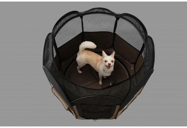 組み立て、折りたたみが簡単なソフトサークルです。給水ボトルを取り付けることが可能で外出先でも簡単に水分補給ができます。持ち運びに便利なキャリングケース付きでペットの防災グッズとしてもおすすめです。
