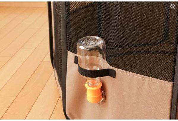 組み立て、折りたたみが簡単なソフトサークルです。給水ボトルを取り付けることが可能で外出先でも簡単に水分補給ができます。持ち運びに便利なキャリングケース付きでペットの防災グッズとしてもおすすめです。
