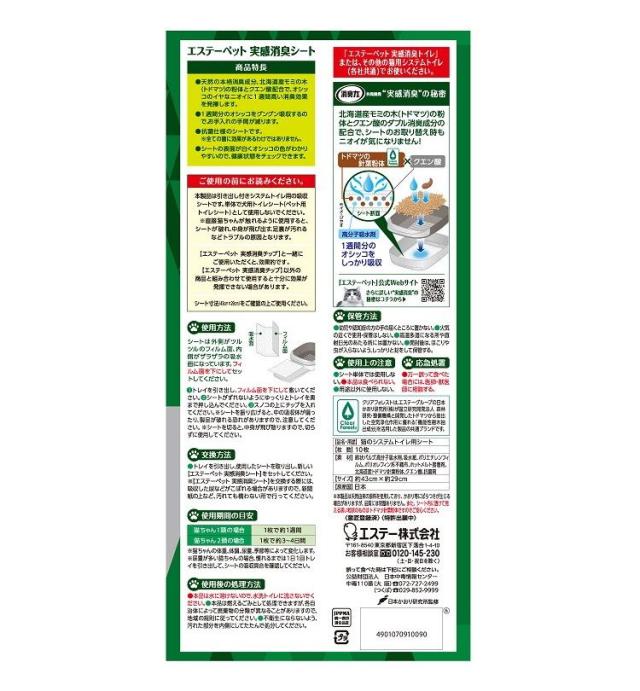 【2個セット】 エステーペット 実感消臭シート 猫用システムトイレ 10枚 システムトイレ用 猫シート 猫用シート 猫シーツ 猫トイレ 猫用トイレ【送料無料】