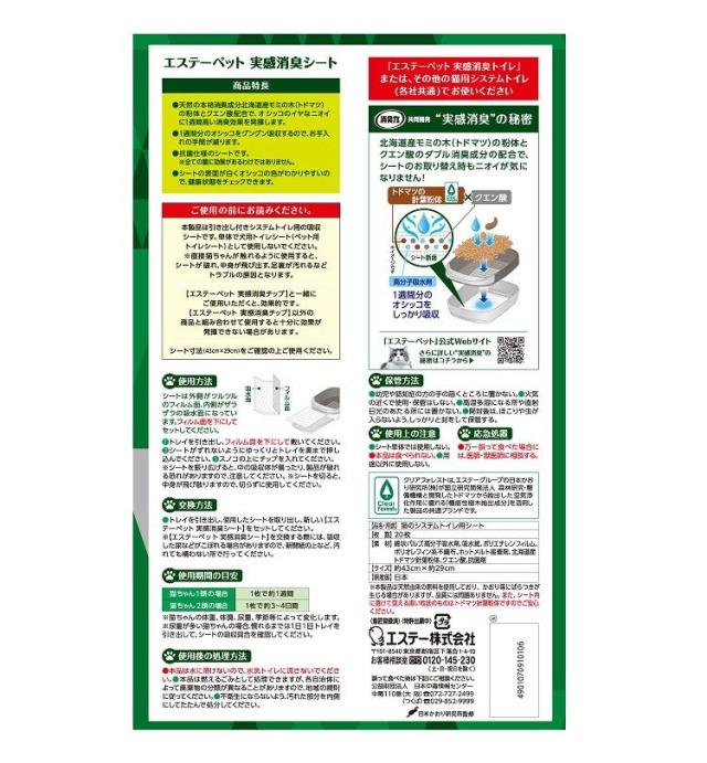 【4個セット】 エステーペット 実感消臭シート 猫用システムトイレ 20枚 システムトイレ用 猫シート 猫用シート 猫シーツ 猫トイレ 猫用トイレ【送料無料】