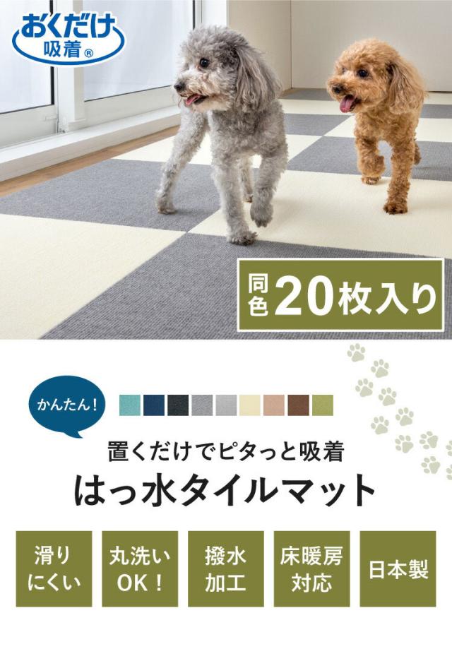 サンコー おくだけ吸着 ペットマット 日本製 20枚入り はっ水 滑り止め 洗える ペット用品 犬用品 撥水タイルマット 撥水 ジョイントマット ペット マット 床暖房対応 消臭 国産 ずれない 45×45cm 厚さ4mm 【送料無料】