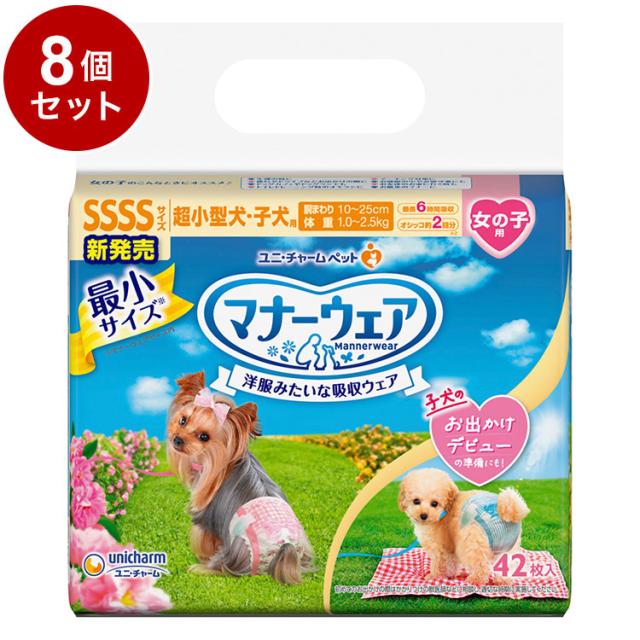 【8個セット】 ユニチャーム マナーウェア 女の子用 4S ピンク青リボン 42枚 ペット用 犬用 おむつ オムツ マナーおむつ 超小型犬 子犬【送料無料】
