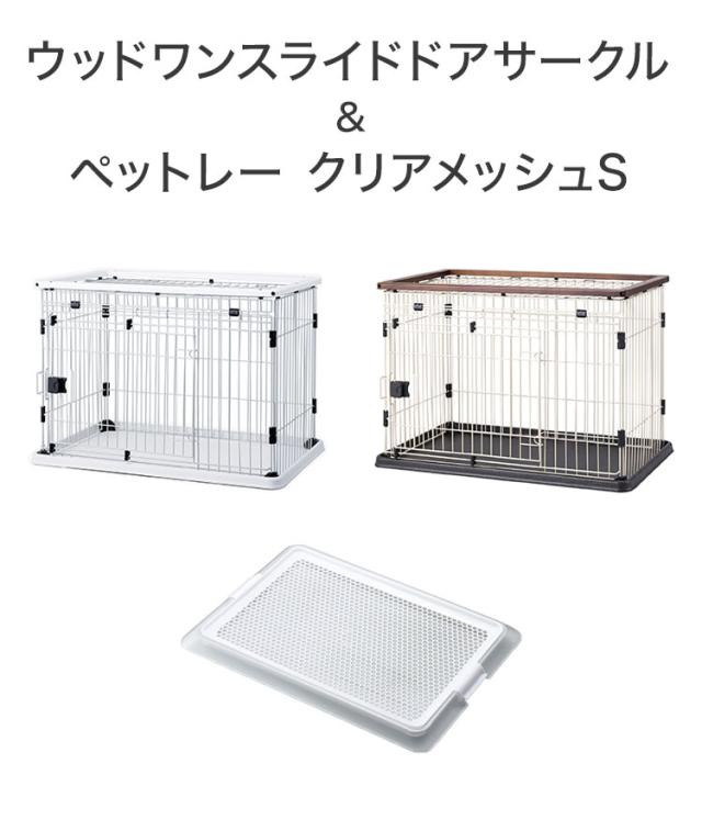 ボンビアルコン 犬用 ケージ サークル スライドドア & ペットレー クリアメッシュ S 木製 ウッド調 屋根付き 犬用ケージ ゲージ ハウス 横開き 木目 小型 コンパクト ウッドワン スライドドアサークル【送料無料】