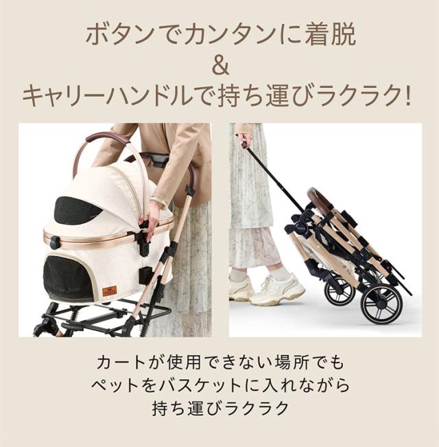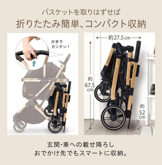 【キャリーハンドル付】折りたたみ時の持ち運びもらくらく。カートが使用できない場所でもペットをバスケットに入れながら持ち運びラクラク。ネコちゃんのおでかけにも!