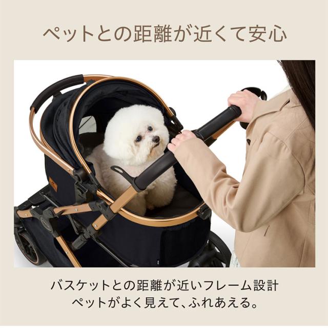 【ペットとの距離が近くて安心】バスケットとの距離が近いフレーム設計で、ペットの様子がよく見え、触れ合えます。