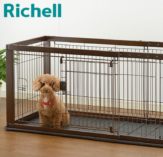 リッチェル 犬用 サークル ケージ 伸縮できる 幅90~154cm 11段階調整 木製 スライドペットサークル レギュラー 木目 木目調 ウッド ハウス ゲージ 小型犬 超小型犬 Richell【送料無料】