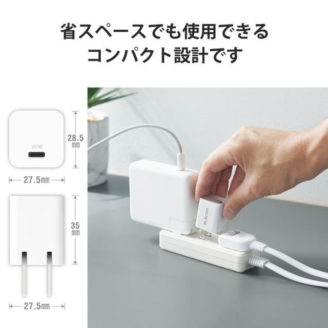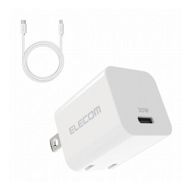エレコム USB Type-C 充電器 PD 対応 20W タイプC ×1 Type C - ライトニングケーブル 同梱 1.5m スイングプラグ 小型 軽量 ACアダプター コンセント ホワイト MPA-ACLP04WH(代引不可)【送料無料】