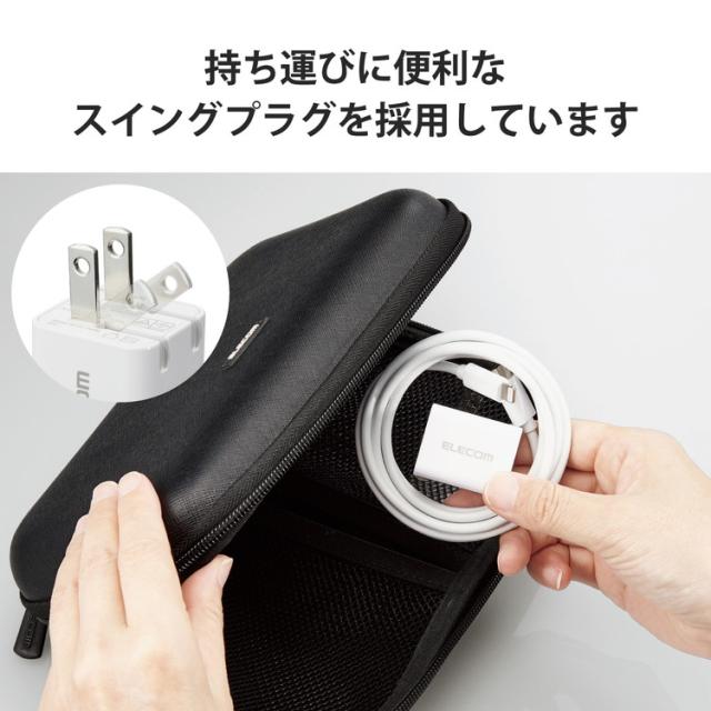 ■未使用時は電源プラグを折りたたんで充電器本体に収納可能です。スッキリとコンパクトに収納できるので、持ち運びにも便利です。