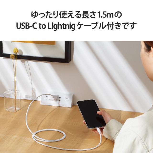■ケーブル長1.5mで取り回しがしやすいLightningケーブルが付属しています。